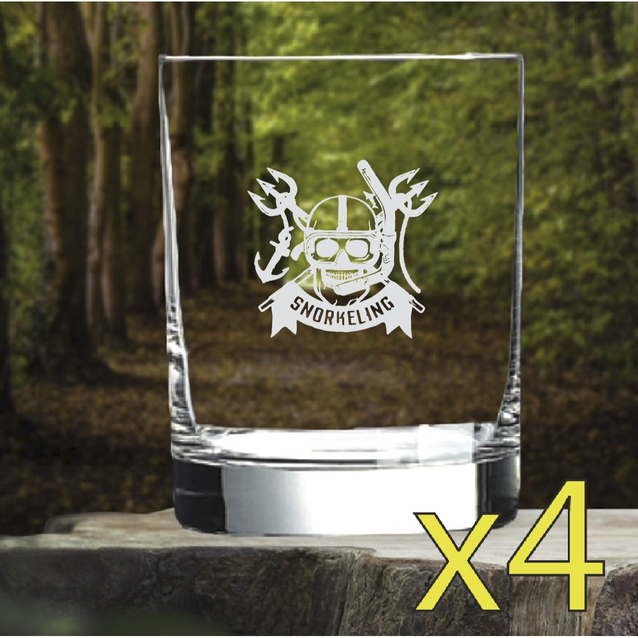 Snorkeling Skull Whiskey Glasses x4 Double 14 Oz Premium Old Fashioned NEW
