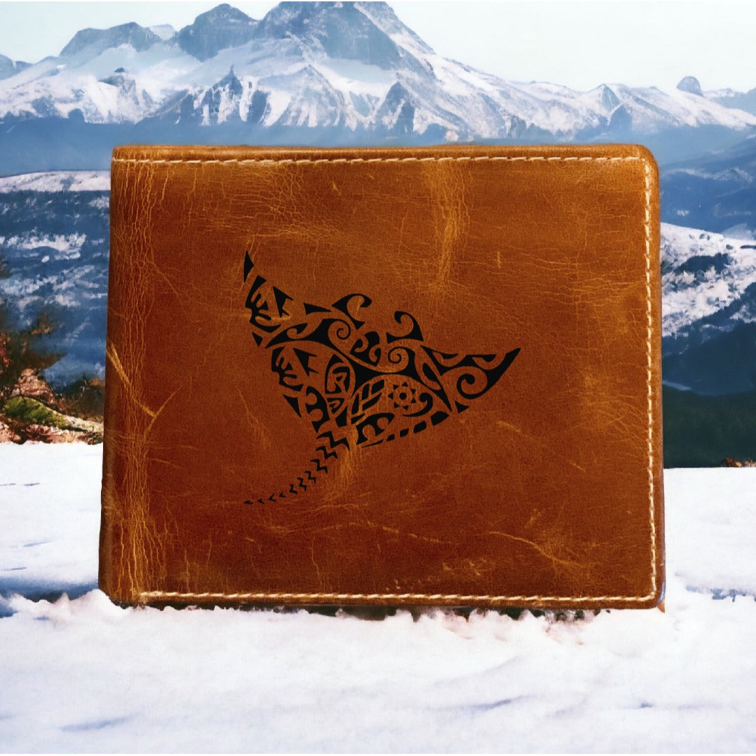 Stingray Leather Wallet Bifold Premium Quality Buffalo Tribal Art Beach NEW