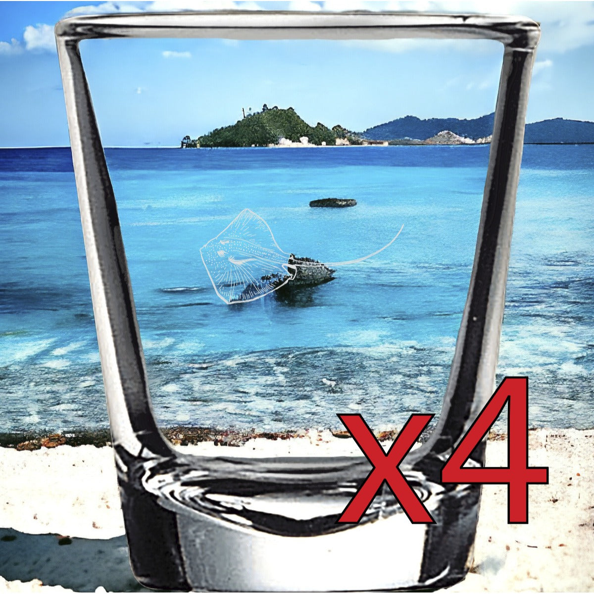 Stingray x4 Shot Glasses Spirit Liquor Party 2 Oz Premium Customize Animal NEW