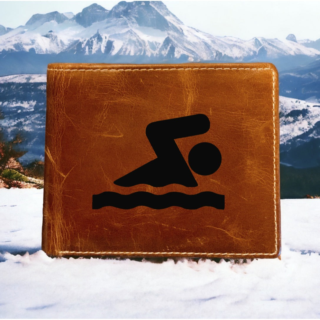 Swimming Leather Wallet Bifold Premium Quality Buffalo Sports Pool Beach NEW