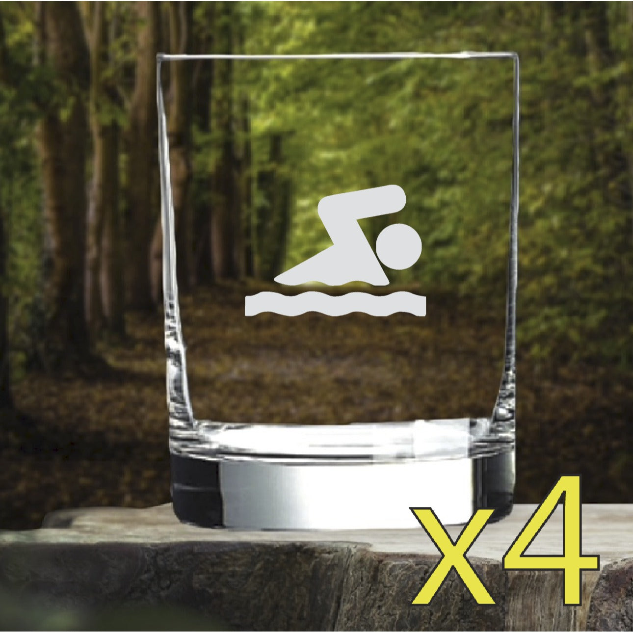 Swimming Whiskey Glasses x4 Double 14 Oz Premium Old Fashioned Sports Pool NEW