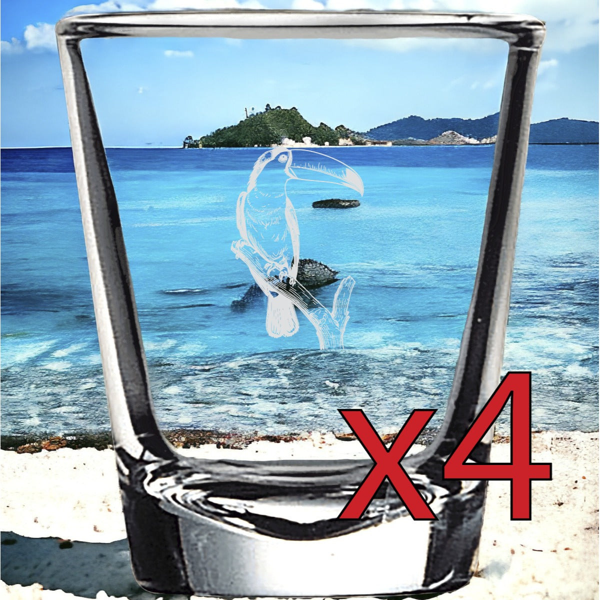 Toucan x4 Shot Glasses Spirit Liquor Party 2 Oz Premium Customize Bird Gift NEW