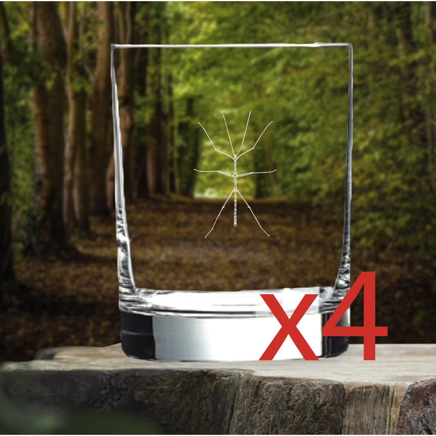 Walking Stick Whiskey Glasses x4 Double 14 Oz Premium Old Fashioned Bug Gift NEW