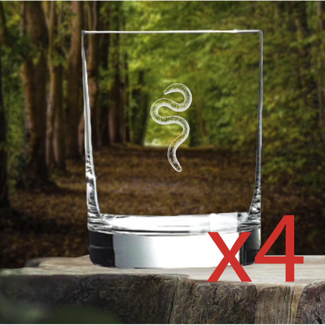 Worm Whiskey Glasses x4 Double 14 Oz Premium Old Fashioned Animal Gift NEW